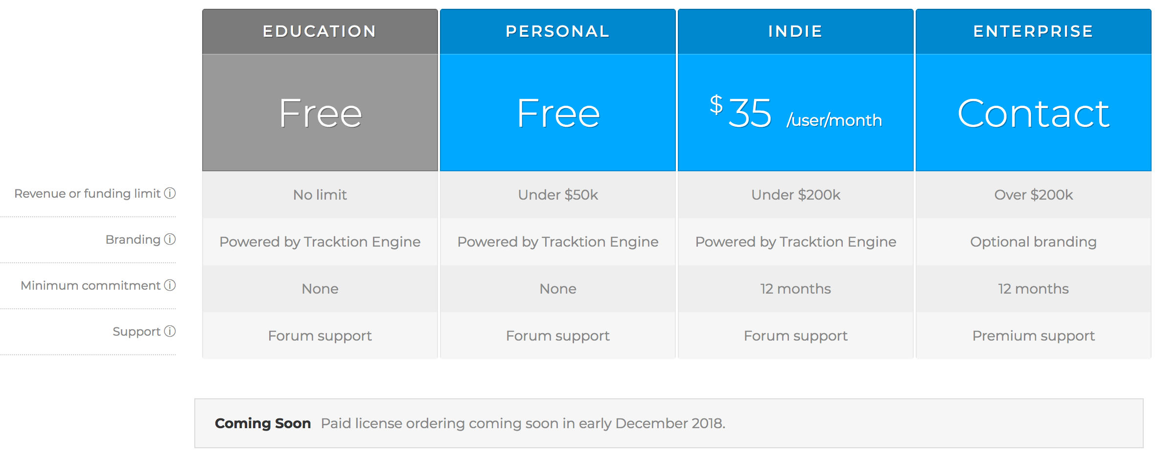 不過,原始碼公開應該是第一步,由下方的價格表可以看出官方將 Tracktion Engine 切割成獨立產品的意圖。